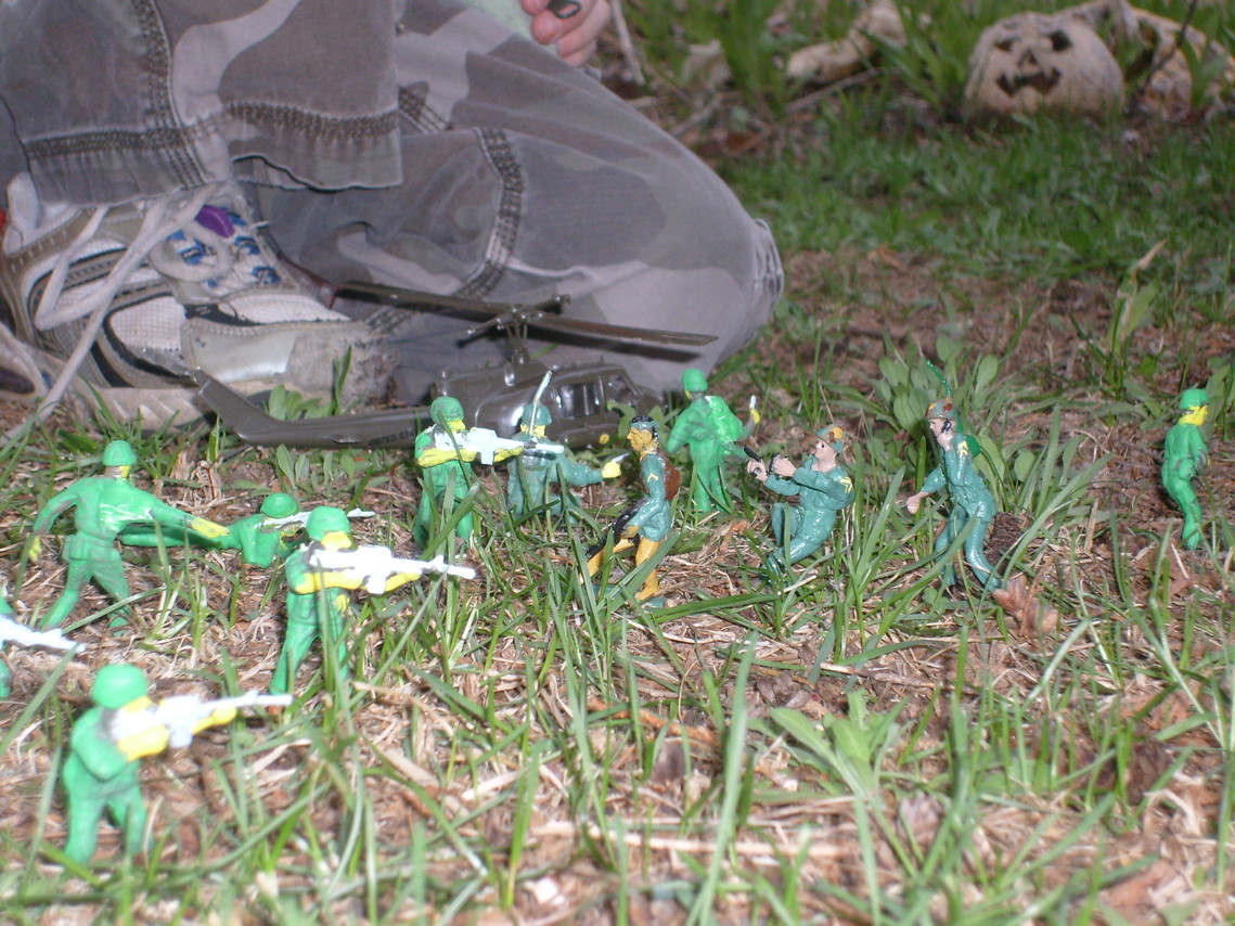 the battle was rough and the troops were ready to fight. the men were ready and while they were walking two enemies jumped out but when they saw they were out numbered they just ran away. so they kept on walking to there check point. then more enemies jumped out. but they ran off again. when they reached there check point they cut down a guy from a tree but he was dead and the other lander was gone!!! so they started traveling to the gate when they found a note but just then the bazooka man fell into a trap and was wounded. two men stayed and guarded the wounded man while the rest went on. when they reached the gate they saw a sign that said GO AWAY! they just entered. they split up and while they did enemies attacked them. the enemies died. they rescued the team and called a chopper to the parachute area. they walked up a hill and were attacked by enemies. the enemies died.